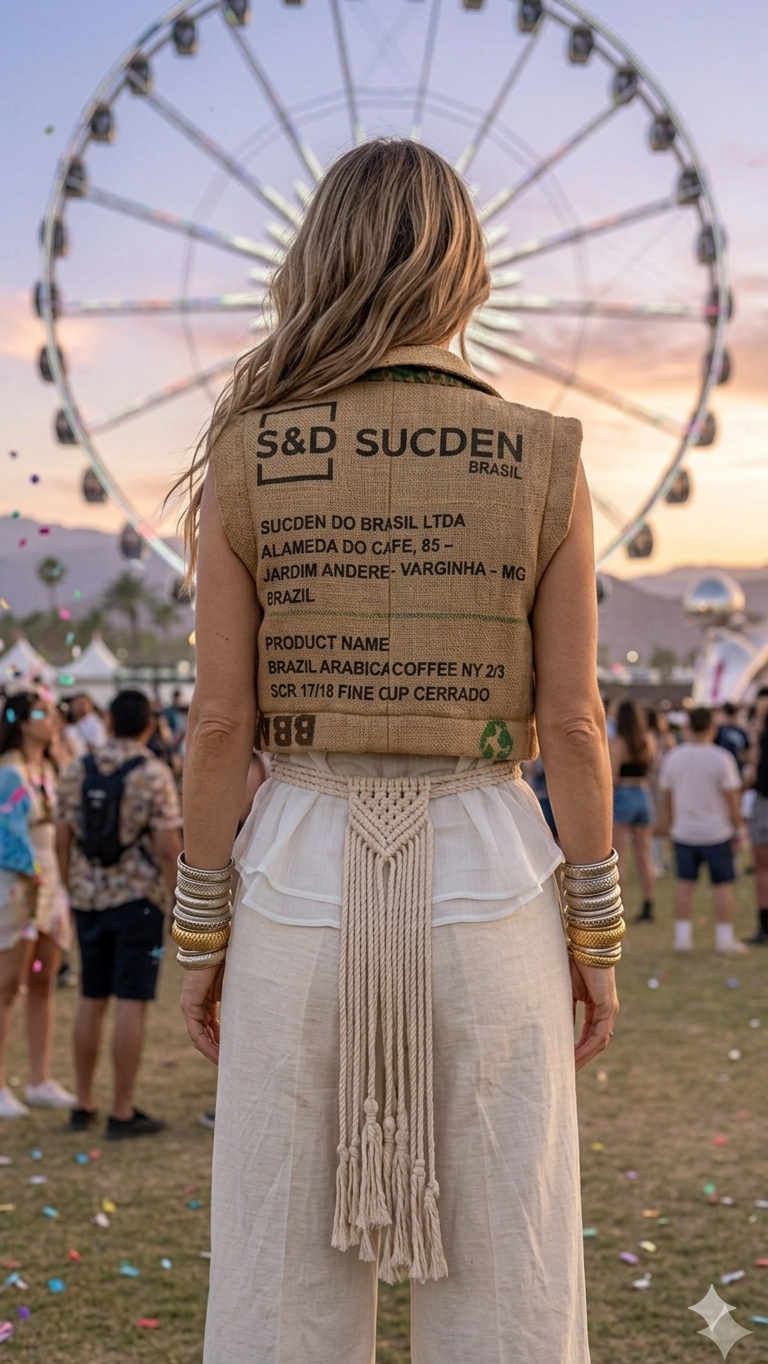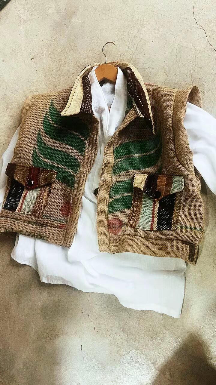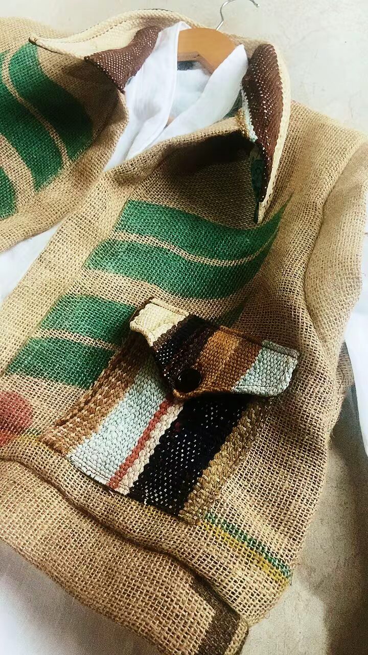 GILET COACHELLA, CREATION ARTISANALE DE LA MARQUE TIPI, 100% TOILE DE JUTE (SAC DE CAFE RECYCLE),