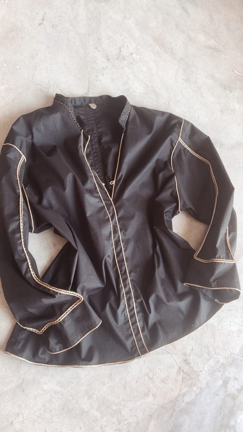 Blouse Amina, Taille unique, coupe over-size, Sfiffa (Fil ou bande le plus souvent doré, que l’on retrouve sur les tenues et vêtements traditionnels marocains), modèle élégant et original.