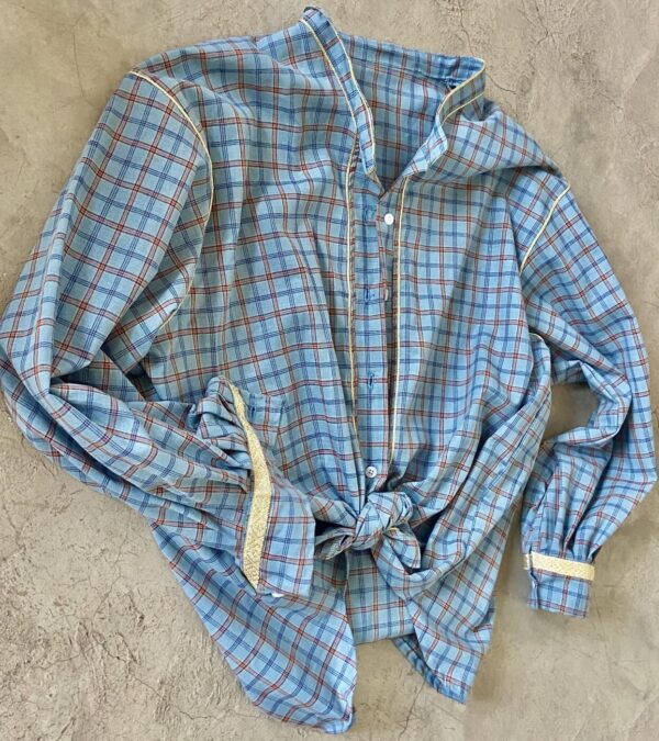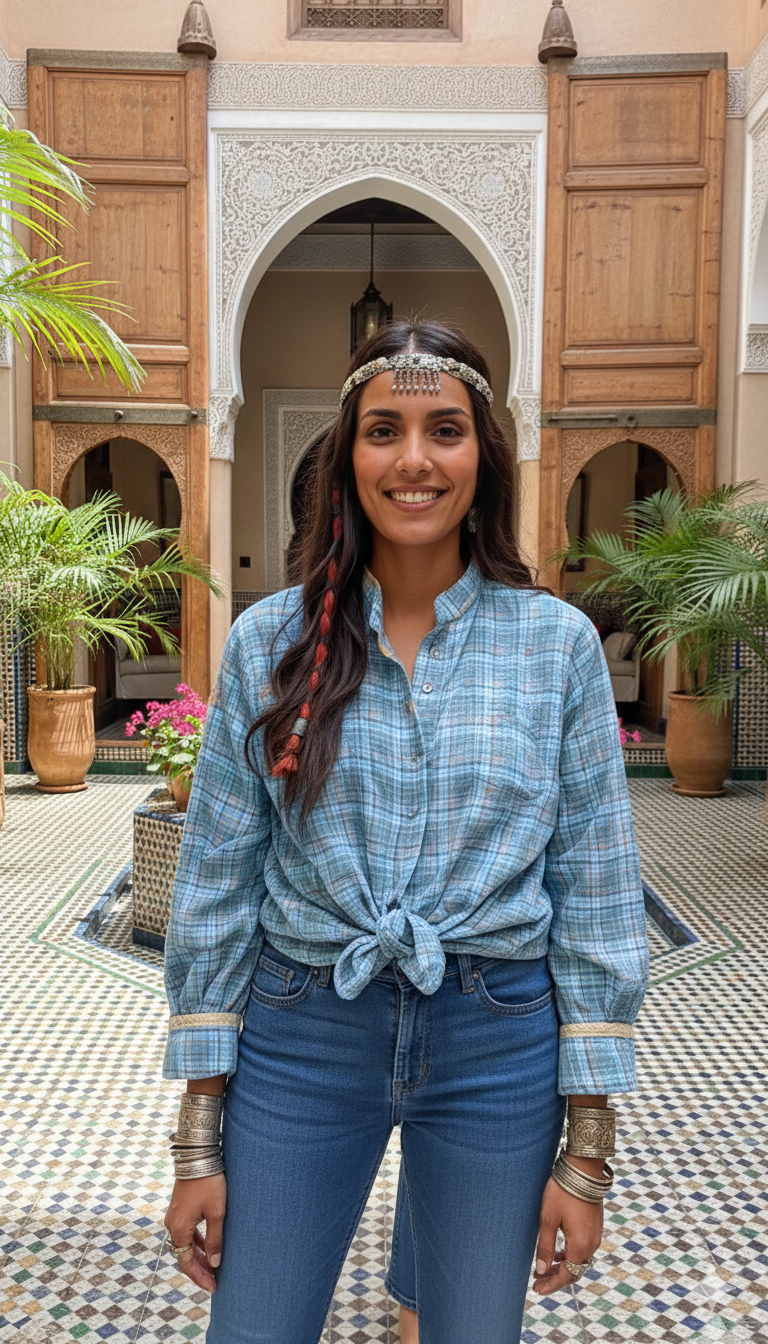 Blouse Wanda, Taille unique, coupe légèrement over-size, 100% LIN, Ornements Sfiffa (Fil ou bande le plus souvent doré, que l’on retrouve sur les tenues et vêtements traditionnels marocains), Ce modèle au tissus incroyablement coloré saura sublimer toutes vos tenues ,à porter sans modérations, idéal en association. avec un Jean ou une jupe longue.