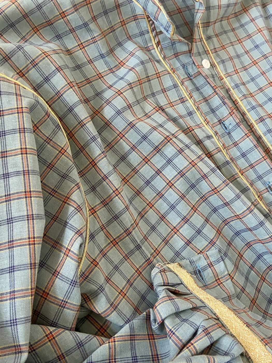 Blouse Wanda, Taille unique, coupe légèrement over-size, 100% LIN, Ornements Sfiffa (Fil ou bande le plus souvent doré, que l'on retrouve sur les tenues et vêtements traditionnels marocains), Ce modèle au tissus incroyablement coloré saura sublimer toutes vos tenues ,à porter sans modérations, idéal en association. avec un Jean ou une jupe longue.Détails