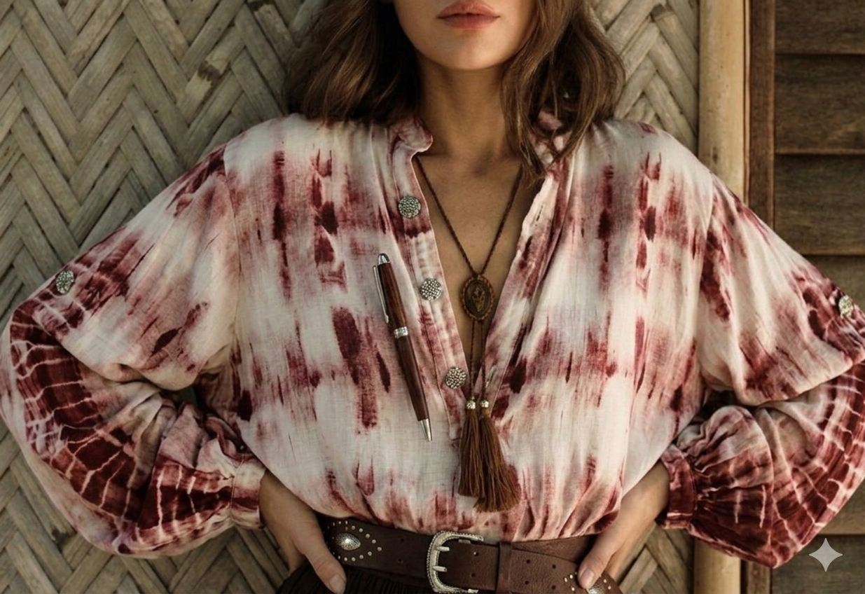 Blouse YARA, Taille unique, coupe confort,100% Viscose, Tie-die, Boutons ethniques, cette blouse sublimera chacun de vos tenues effet bohème garanti …