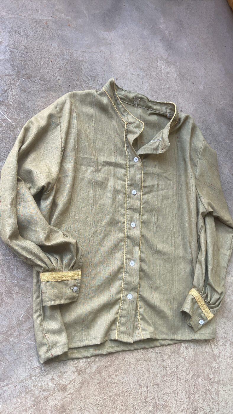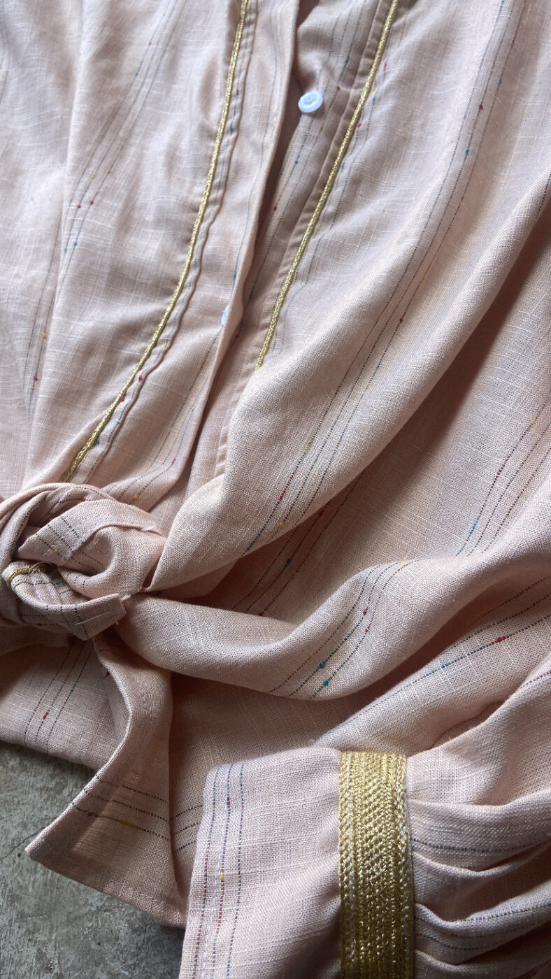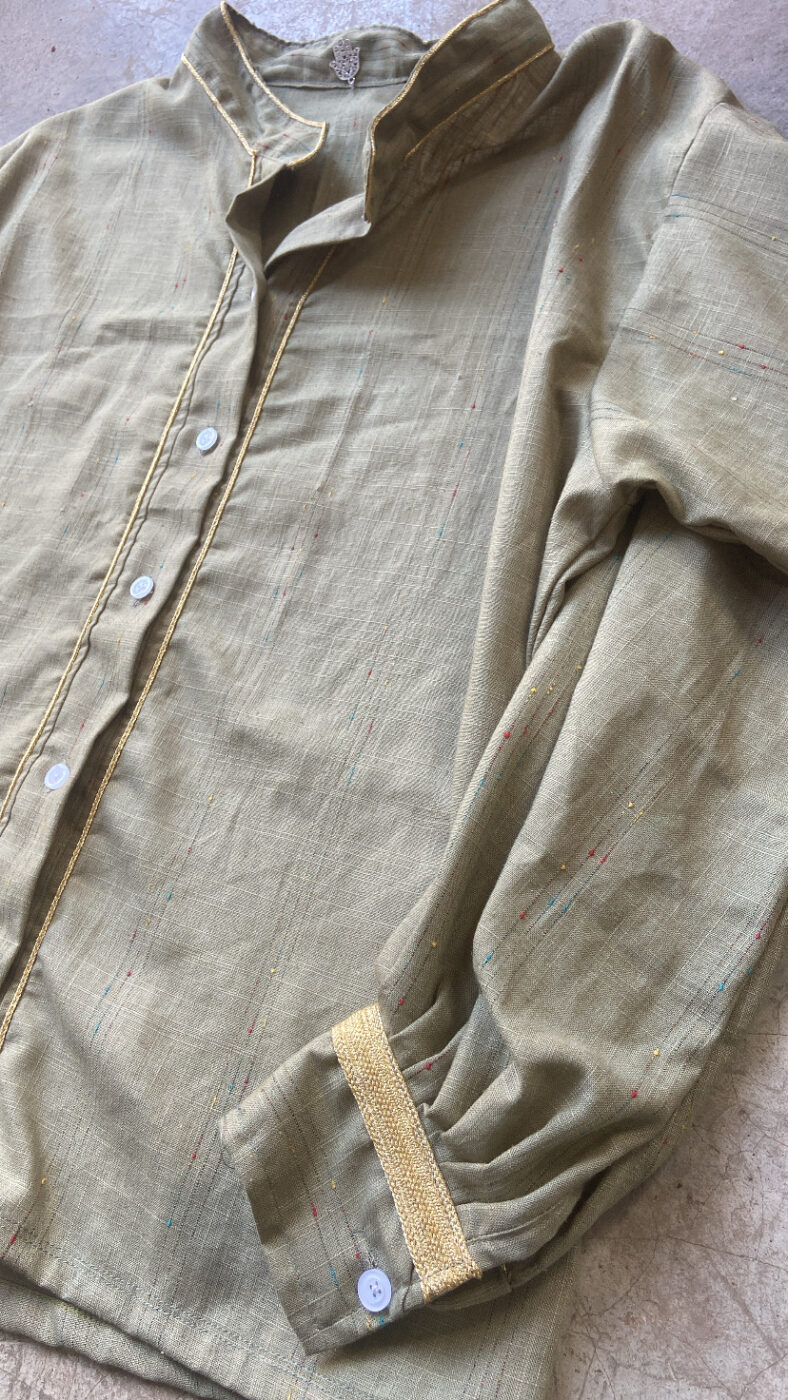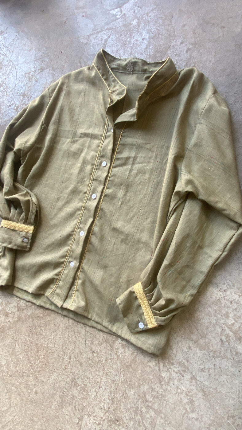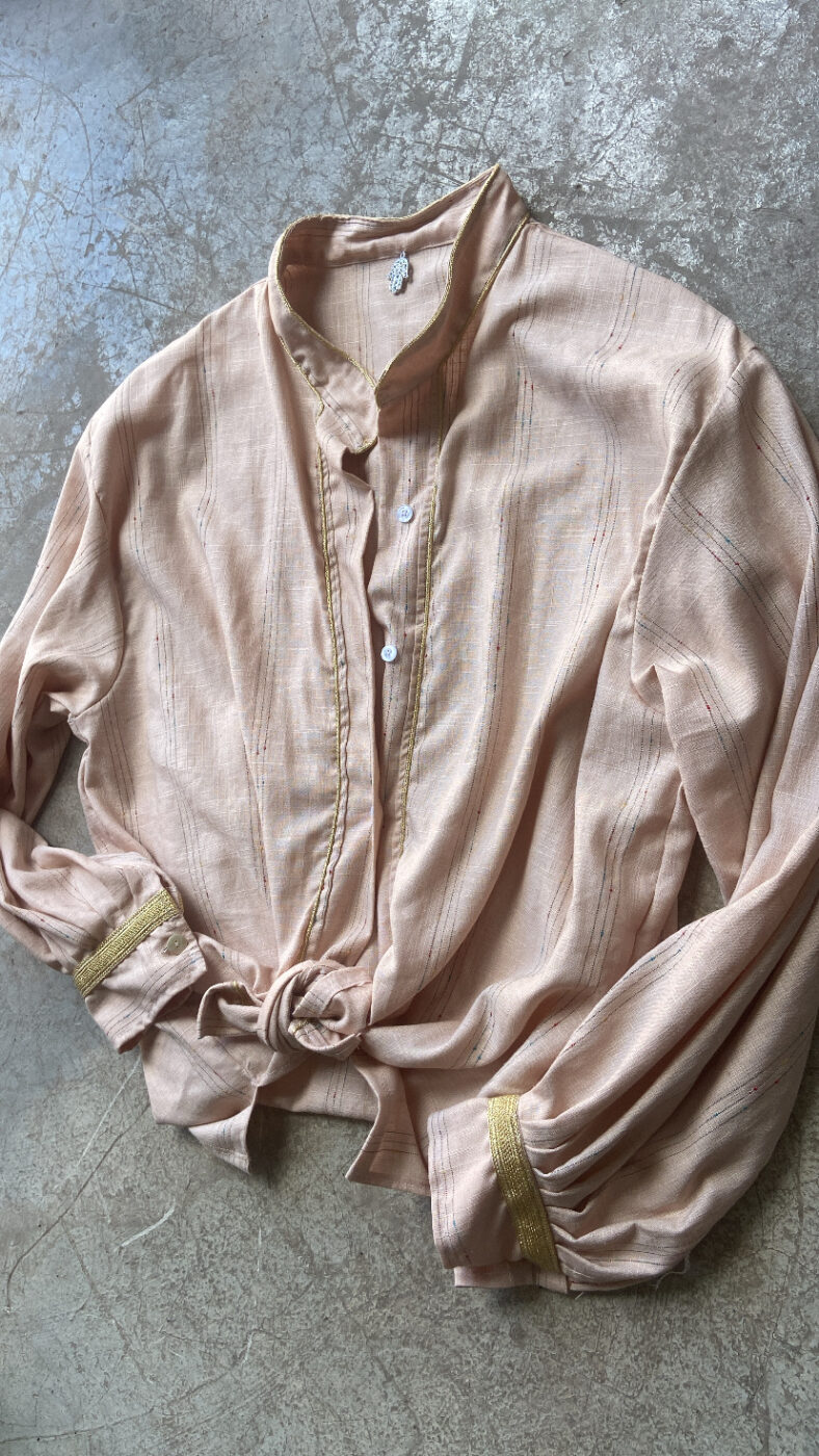 Chemise Zeina, Taille unique, 100% Lin, motifs fils dorés , coupe légèrement loose, existe en deux coloris.Détails