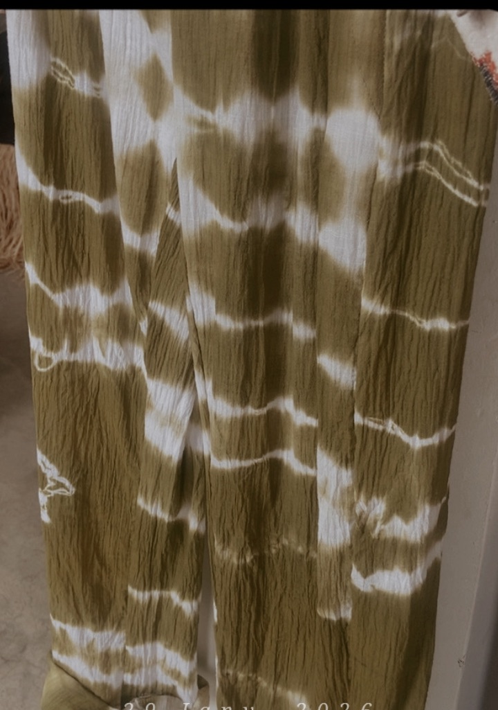 Pantalo Nura, création 100% artisanale de la marque TIPI, Tie-Die Hand-made, Taille unique, Broderies dur les pochesElastique convient parfaitement de la taille S à la taille L, Ultra confort et agréable matière Gaze-de-coton.
