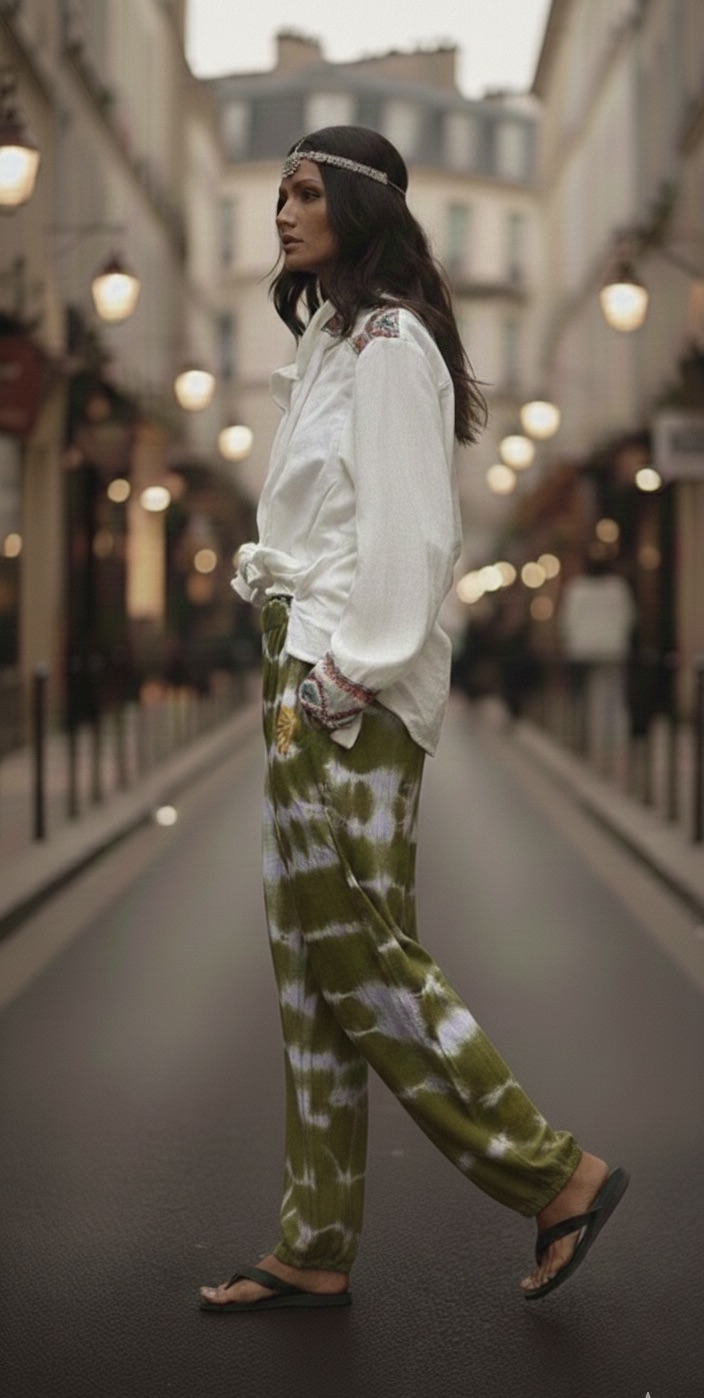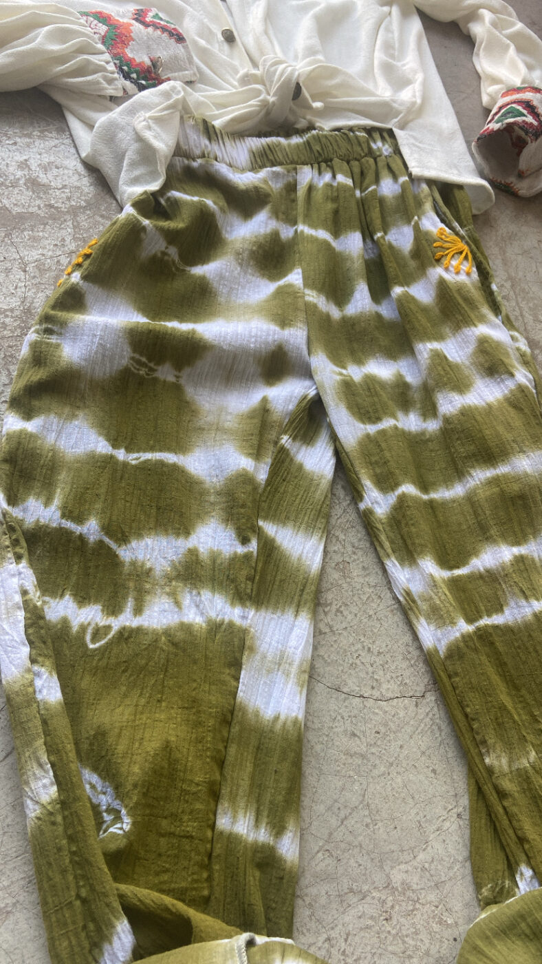 Pantalo Nura, création 100% artisanale de la marque TIPI, Tie-Die Hand-made, Taille unique, Broderies dur les poches