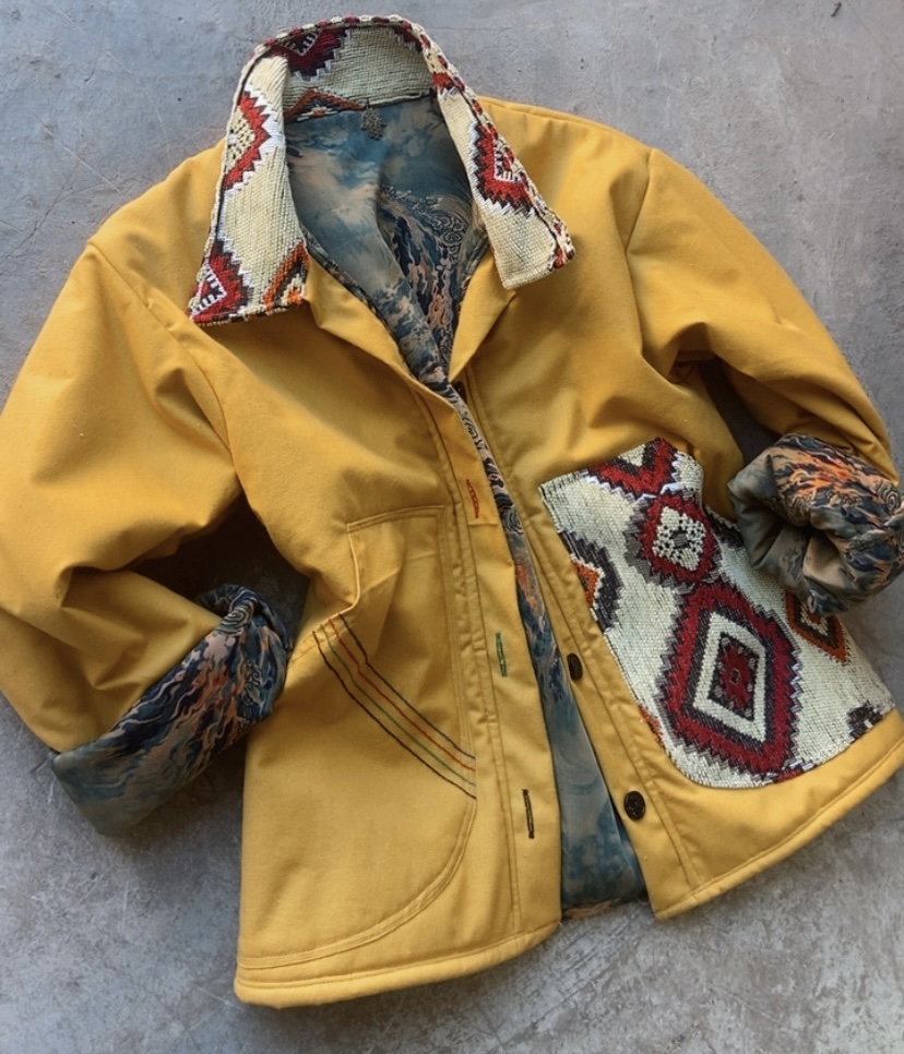 Parka Louna, Taille unique, coupe over-size, coton imperméable, col et poches velours, revers intérieur doublé et 100% Soie,