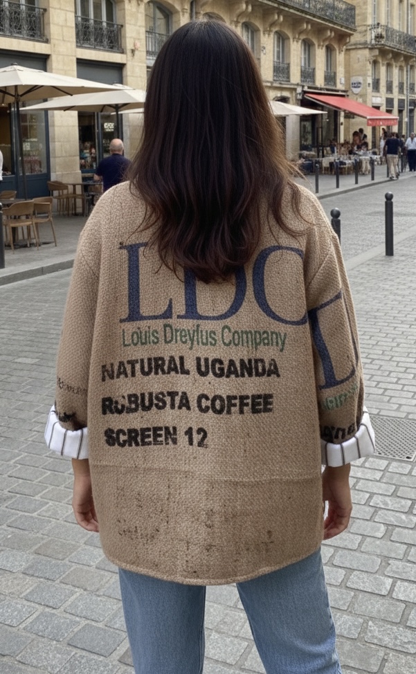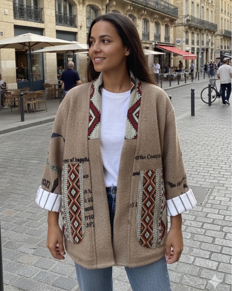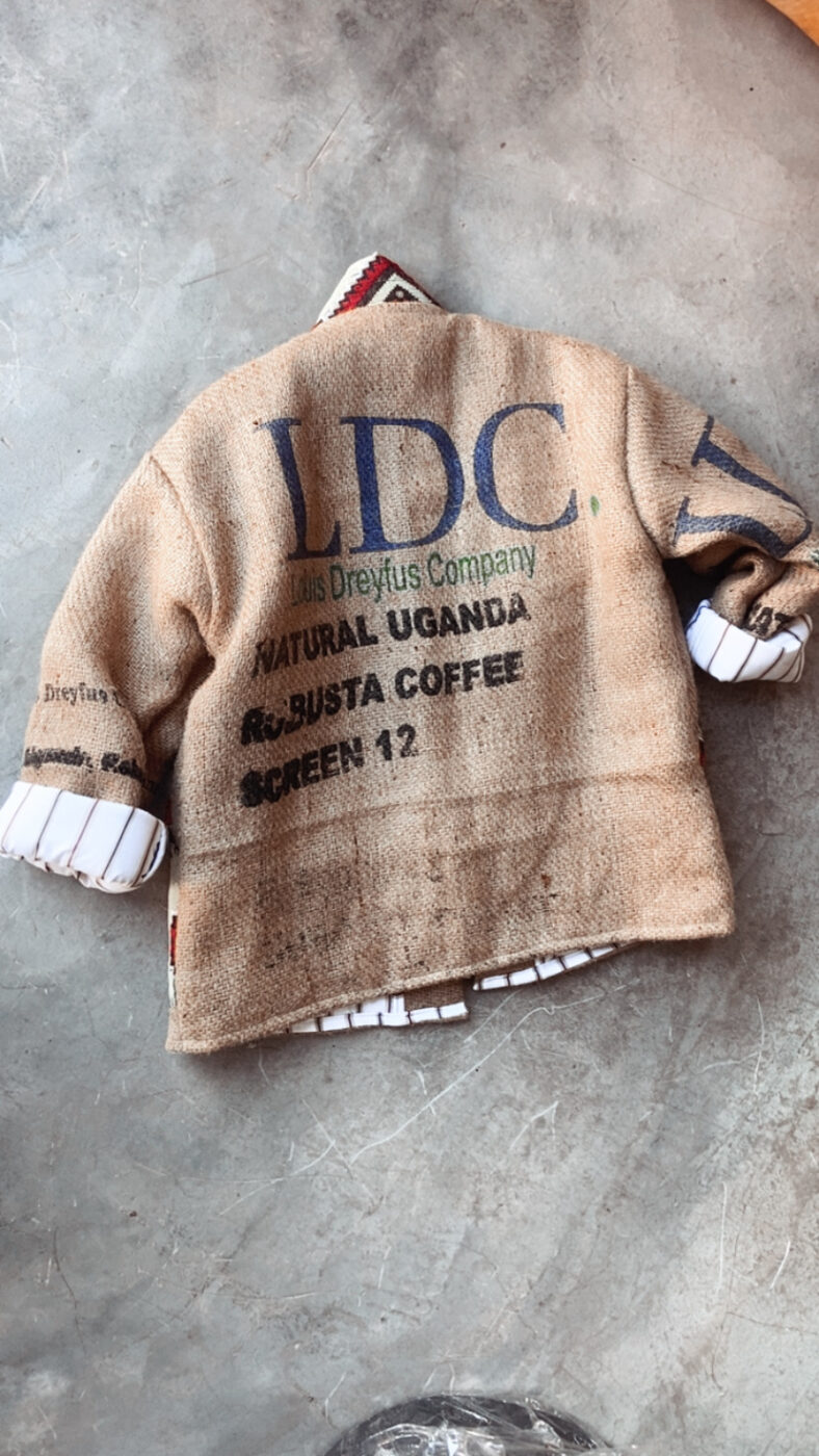 Kimono SSOUIRA, Modèle incroyable, réalisé à partie de véritables SACS DE CAFE originaux, chaque pièce est unique et donne un style et un flow incroyables , doublure en coton assurant un confort maximal, poches et col en velours ethnique, nous avons conservé les imprimés originaux de chaque sac pour créer une pièce unique.