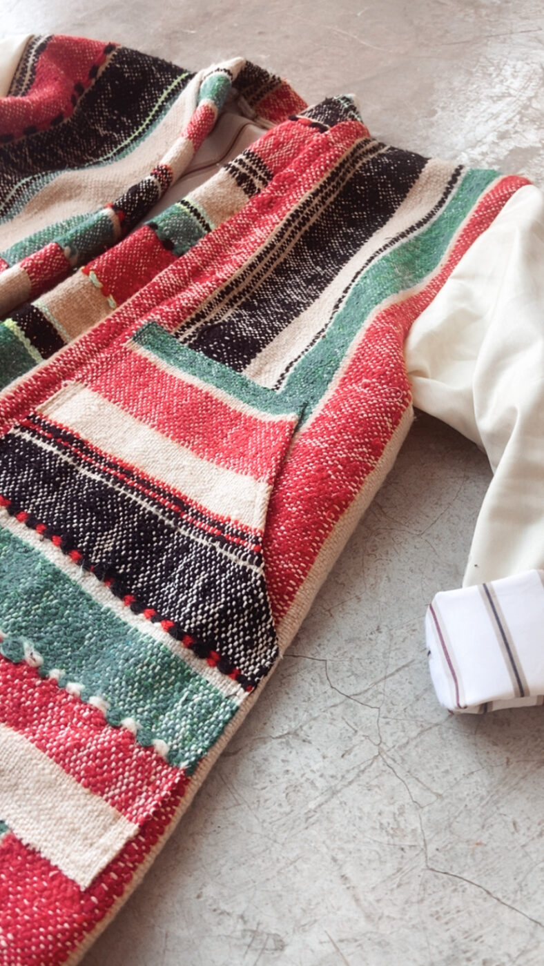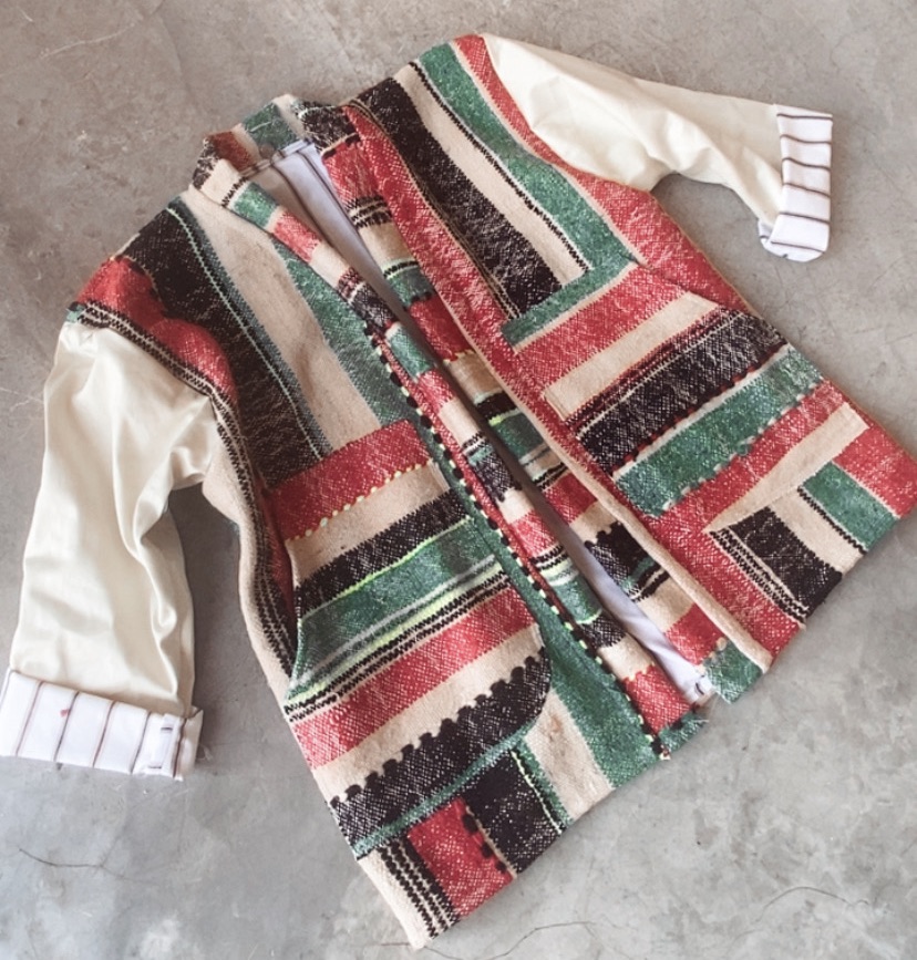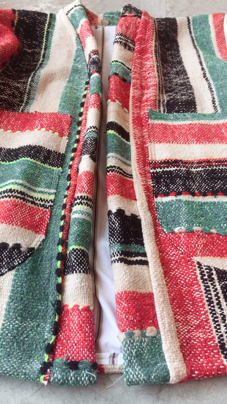 Manteau Lina, Taille unique, Création originale à partir de tissus typiquement marocain , pièce unique, Unisexe convient à toutes les morphologies,Coton/Laine