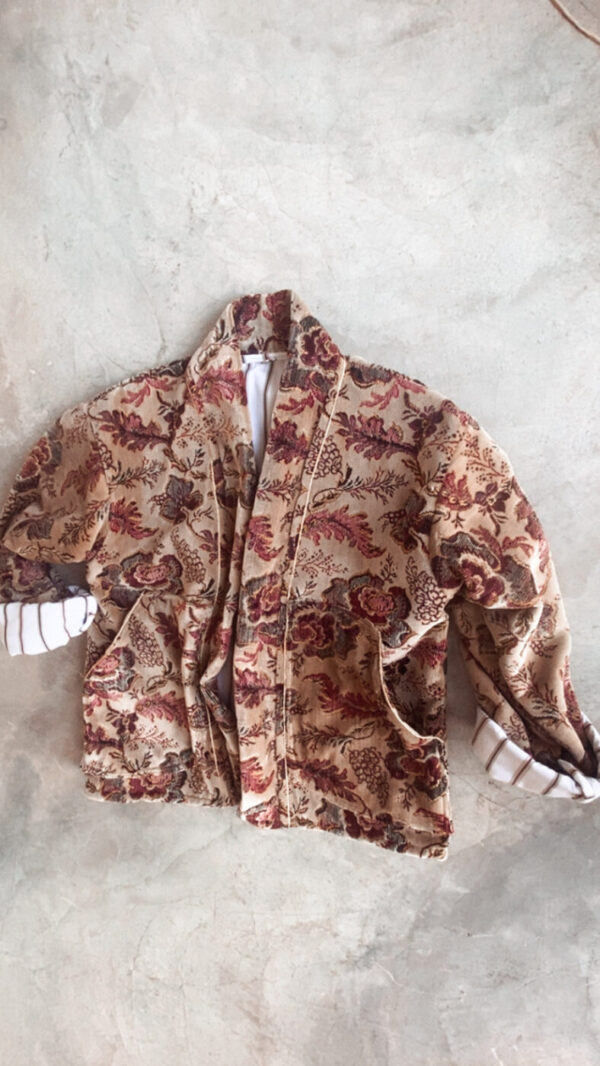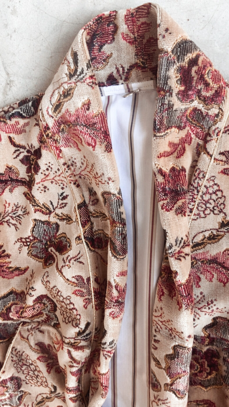 Velvet Jacket, Pièce unique, créée à partie de tissus ancien, 100% velours, les motifs sont incroyable. et la coupe kimono over-size contrastent parfaitement avec la matière, si vous cherchez une pièce unique et originale cette veste est faite pour vous.